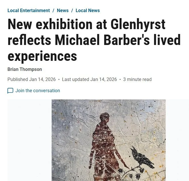Michael Barber (b. 1967) is an artist of Mohawk descent from Port Dover, Ontario, and currently lives in Simcoe, Ontario. His work is largely autobiographical, examining his personal history and the impact of the Residential School system on members of his family. Barber’s work has been exhibited across the province, including at the Woodland Cultural Centre and Lynnwood Arts. His work is held in public and private collections throughout Canada and the United States, including those of the Ontario Trillium Foundation and The Co-operators Group.