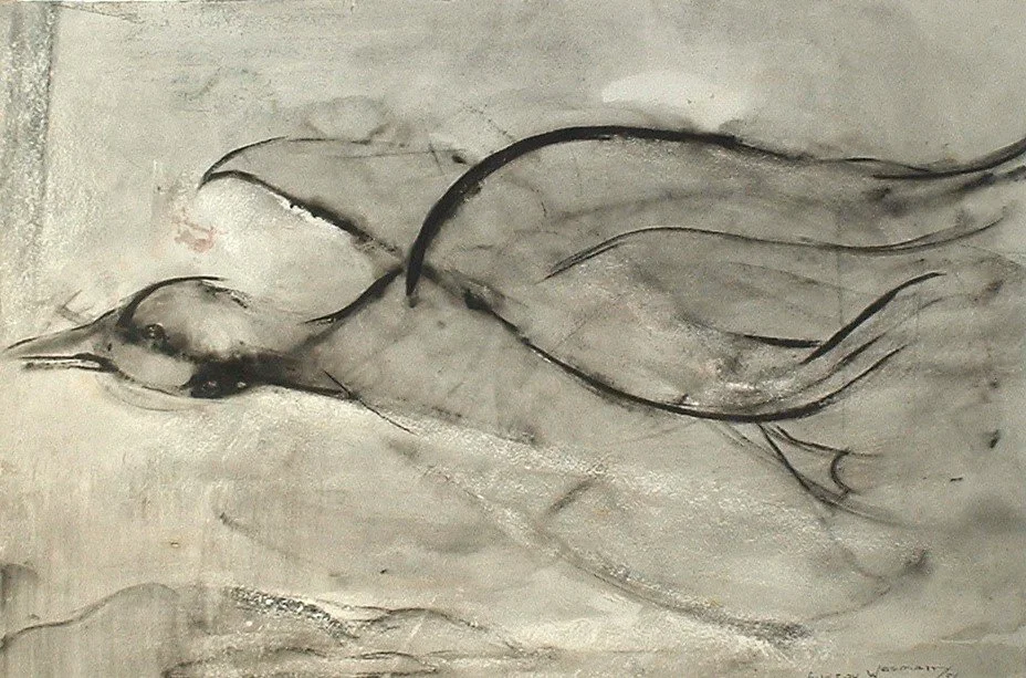 My whole being in total perception; light in space lives, and what it touches is excited into life. I am one point in this space, and my mind is caught up, and drawing actions follow. The result is a surface with a wide gamut of impact and purpose; - assertive, darting, penetrating, deflecting, retreating, hovering and caressing, dying and being reborn, seeking a poise of wholeness. Time and pace are critical. These works are landscapes because that is where I was when it happened. Are they also something else? Contemplation raises questions about nature and meaning of experience. How do we choose to define our terms? At what point does the particular become the abstract out of life’s abundance? – what is beyond the vanishing point?